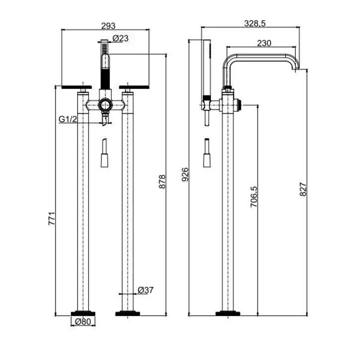 Fima Carlo Frattini Park Lane Смеситель для ванны, напольный, с душевым комплектом, излив 23см., цвет: хром