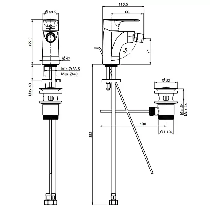Fima Carlo Frattini Serie 22 Смеситель для биде, на 1 отв., с донным клапаном, цвет: хром