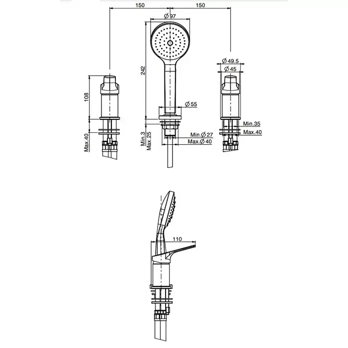 Fima Carlo Frattini Serie 4 Смеситель на борт ванны, на 3 отв., с ручным душем, цвет: хром