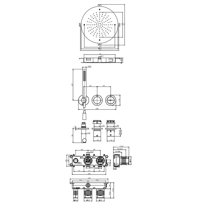 Fima Carlo Frattini Sistemi doccia Душевая система, с верхним душем 49х49см., встраиваемый, термостатическим смесителем, на 2 выхода и ручным душем, цвет: золото
