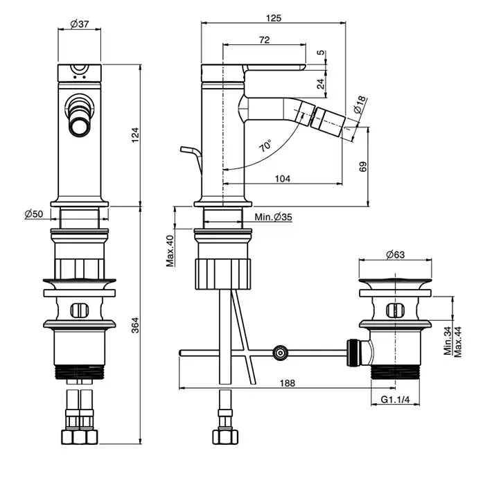 Fima Carlo Frattini Snap Смеситель для биде, на 1 отв., с донным клапаном, цвет: хром