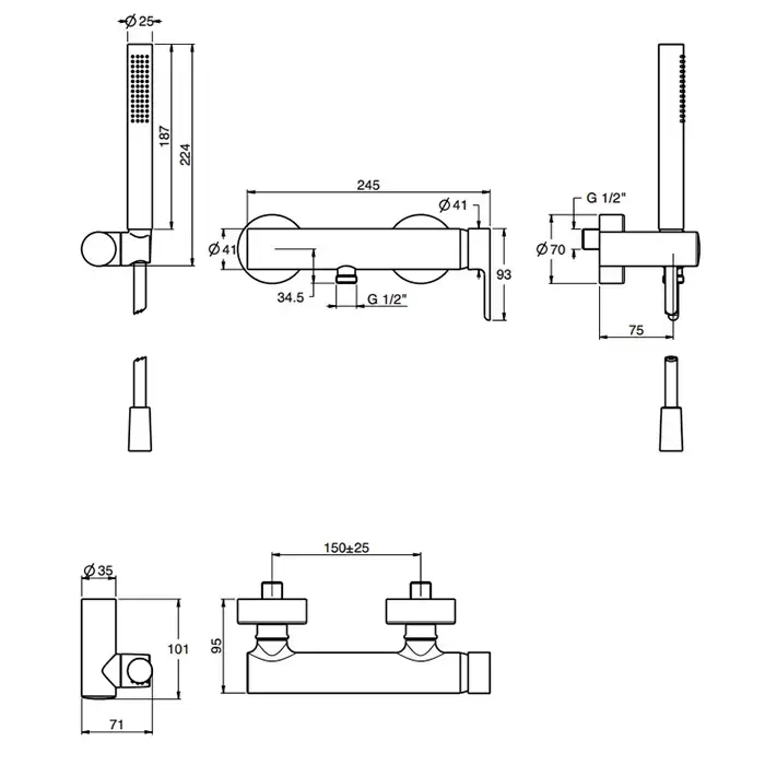 Fima Carlo Frattini Snap Смеситель для душа, настенный, с ручным душем, цвет: черный матовый