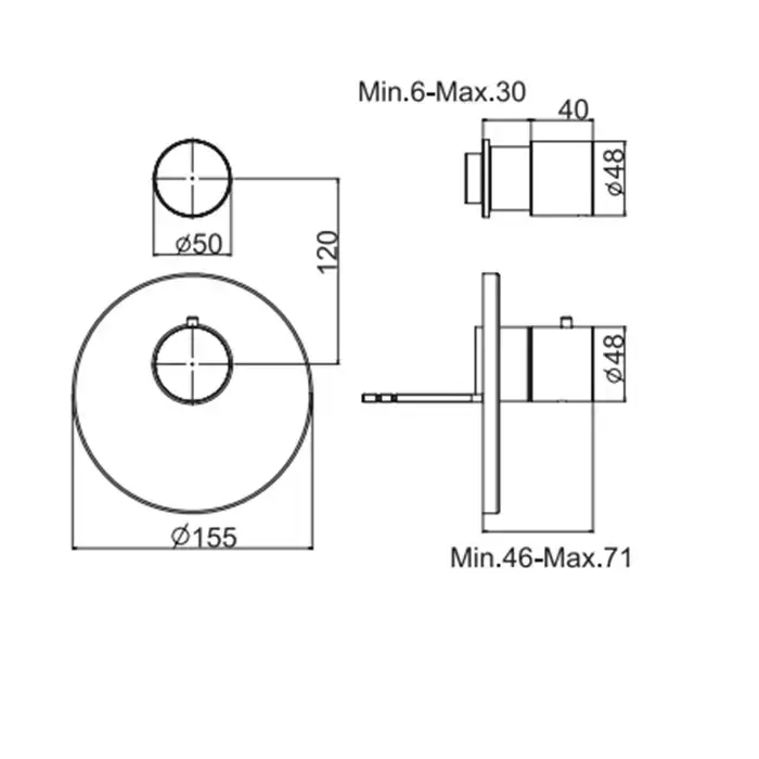 Fima Carlo Frattini Spillo Steel F3083X1INOX Смеситель для душа встроенный, термостатический, 1 запорный вентиль, внутренняя часть (F2461) в комплекте, цвет: INOX