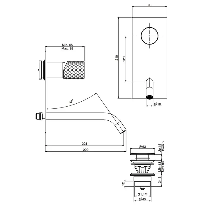Fima Carlo Frattini Spillo Tech Cмеситель для раковины, встраиваемый, излив: 20.3см., цвет: золото