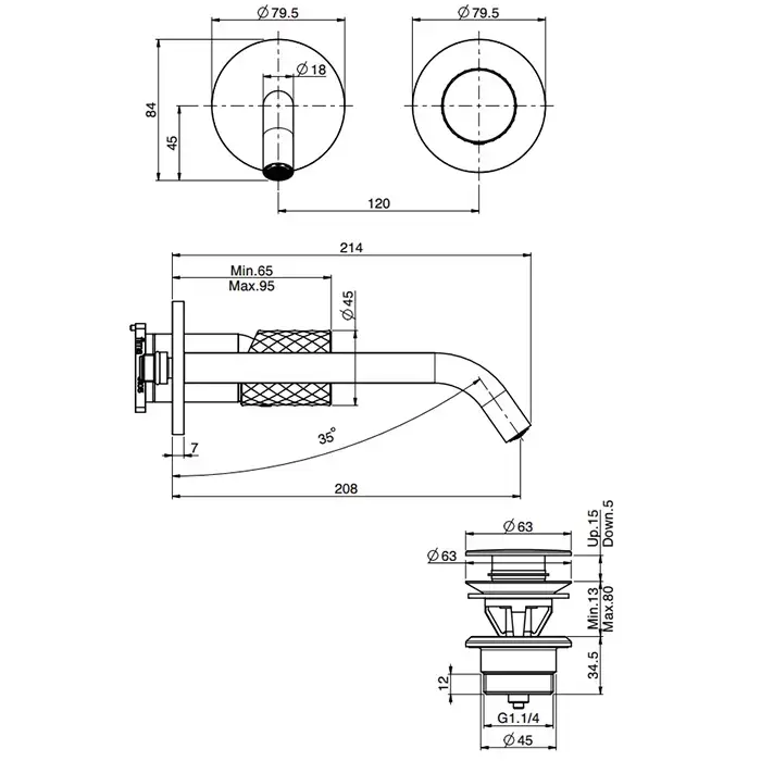 Fima Carlo Frattini Spillo Tech Cмеситель для раковины, встраиваемый, излив: 20.8см., цвет: золото498805