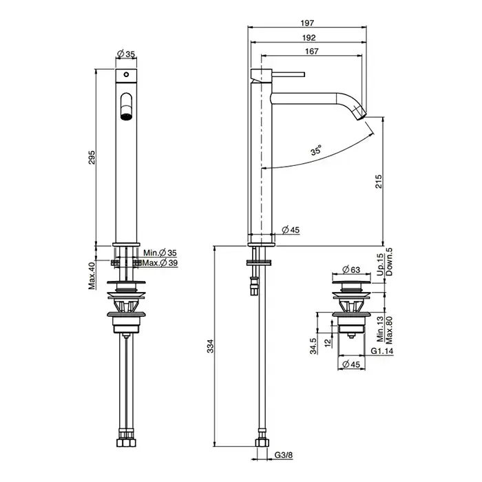 Fima Carlo Frattini Spillo Tech Смеситель для раковины, на 1 отв., высокий, XS, с донным клапаном, цвет: черный матовый