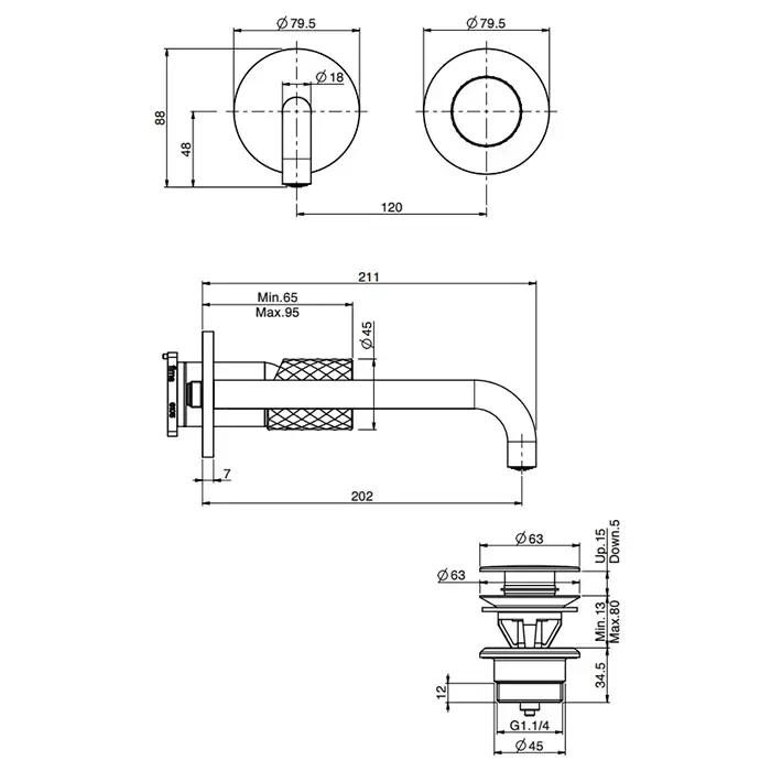 Fima Carlo Frattini Spillo Tech Смеситель для раковины, встраиваемый, излив: 20.2см., цвет: черный матовый