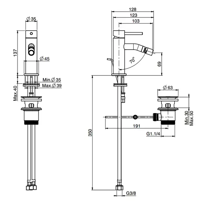 Fima Carlo Frattini Spillo Up Смеситель для биде, на 1 отв., с донным клапаном, цвет: золото