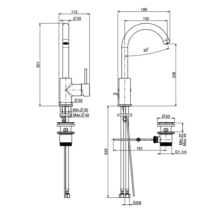 Fima Carlo Frattini Spillo Up Смеситель для раковины, на 1 отв., с донным клапаном, цвет: хром