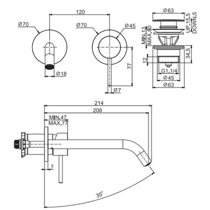 Fima Carlo Frattini Spillo UP Смеситель для раковины настенный, однорычажный, излив 21см, внешняя часть, цвет: черный матовый