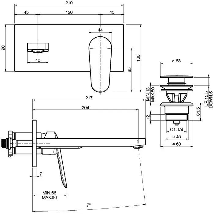 Fima Carlo Frattini Spot F3021WLX5NS Cмеситель для раковины, встраиваемый, пластина из ABS, внешняя часть, донный клапан click-clack, излив: 204 мм., цвет: чёрный матовый