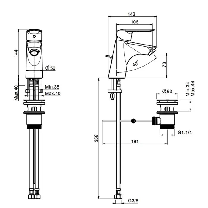 Fima Carlo Frattini Spot Смеситель для раковины, на 1 отв., с донным клапано, цвет: хром
