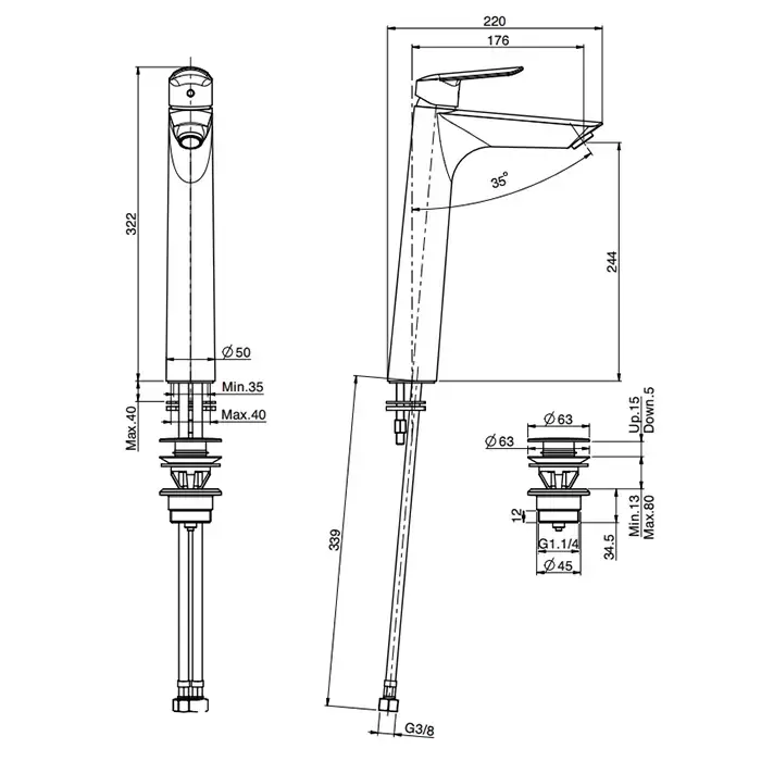 Fima Carlo Frattini Spot Смеситель для раковины, на 1 отв., высокий, h: см., с донным клапано, цвет: черный матовый