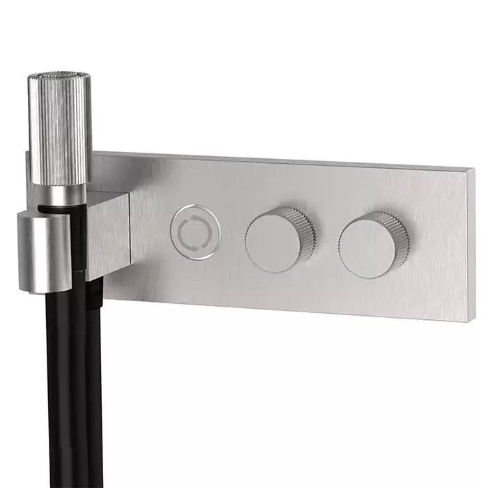 Fima Carlo Frattini Switch Смеситель для душа, встраиваемый, 2 выхода с ручным душем, c чёрным шлангом 150см., цвет: нержавеющая сталь