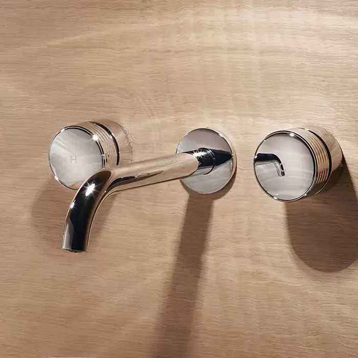 Fima Carlo Frattini Texture Collection F5601/5HCR Смеситель для раковины на 3 отв., настенный, излив 150 мм, донный клапан click-clack, ручки "H", БЕЗ накладок, внутр. часть (F2230) в комплекте, цвет: хром