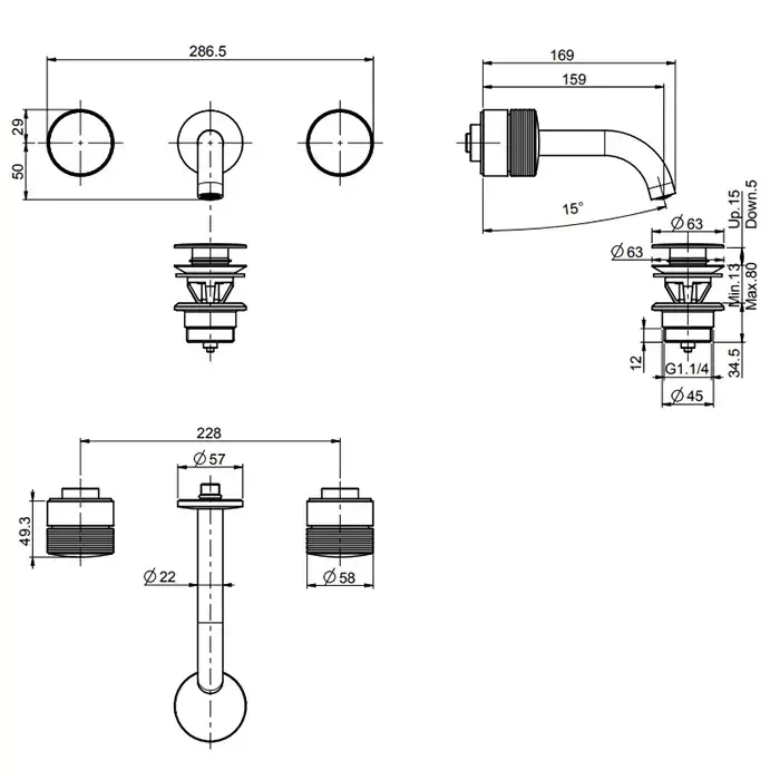 Fima Carlo Frattini Texture Collection Смеситель для раковины, на 3 отв., с донным клапаном, цвет: черный матовый