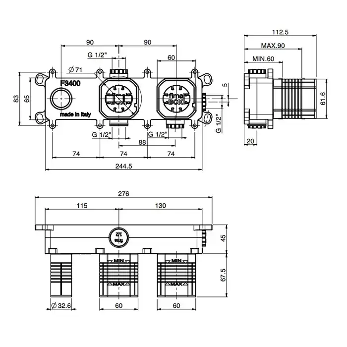 FIMA|Carlo Frattini Встраваемая часть смесителя для душа на 2 источника