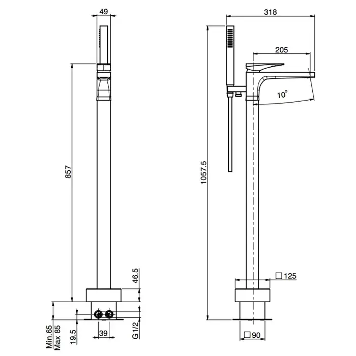 Fima Carlo Frattini Zeta Смеситель для ванны, напольный, с ручным душем, цвет: черный матовый