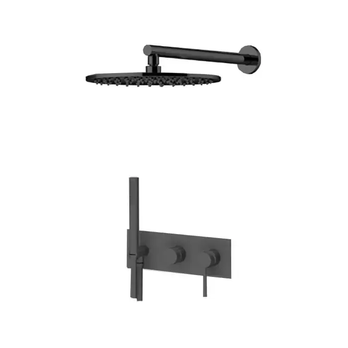 Gattoni Circle One Комплект для душа, со смесителем на 2 вых, ручной лейкой и верхним душем 25см, цвет: черный матовый