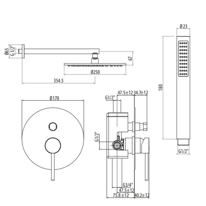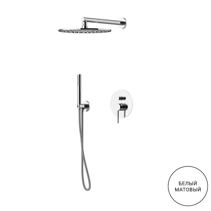 Gattoni Circle One Комплект для ванны со смесителем двстроенным на 2 вых, ручной лейкой и верхним душем 250мм, цвет: белый матовый