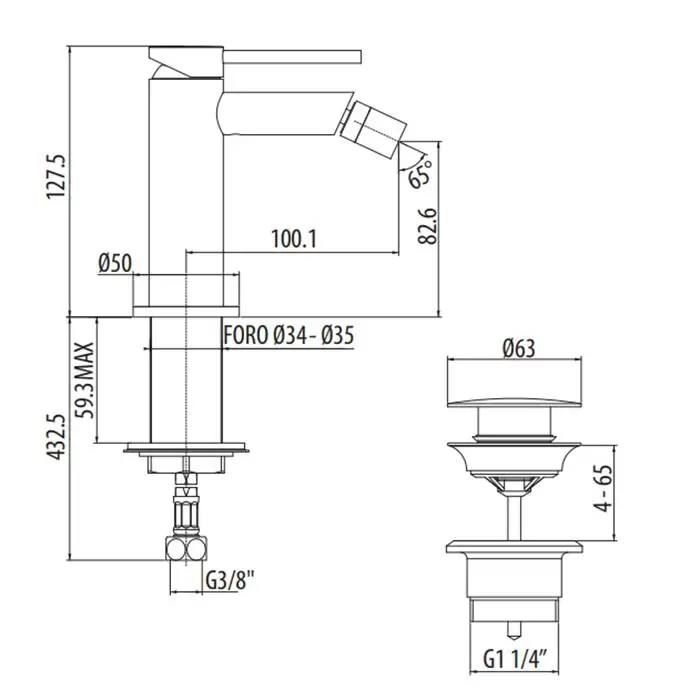 Gattoni Circle One Смеситель для биде, на 1 отв., излив 100 мм, с донным клапаном, цвет: черный матовый