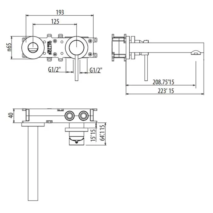 Gattoni Circle One Смеситель для раковины встроенный, на 2 отв., с внутр частью, цвет: черный матовый