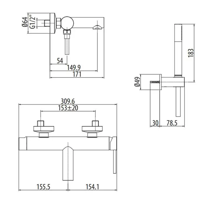 Gattoni Circle One Смеситель настенный для ванны, с ручной лейкой на держателе. цвет: белый матовый