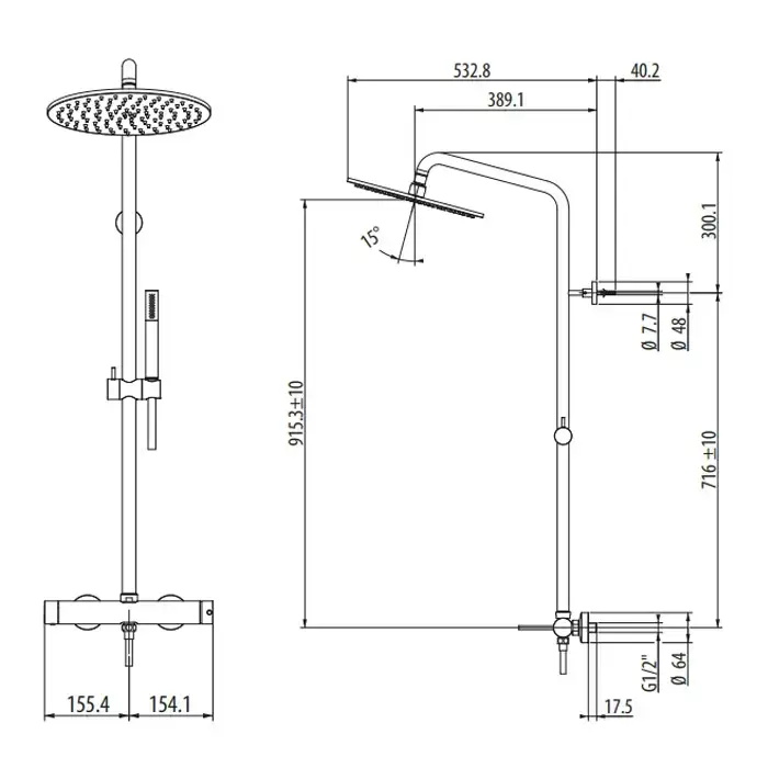 Gattoni Circle Two Комплект для душа: монокомандный смеситель, душевая стойка, душевая лейка 250мм, ручной душ, цвет белый матовый