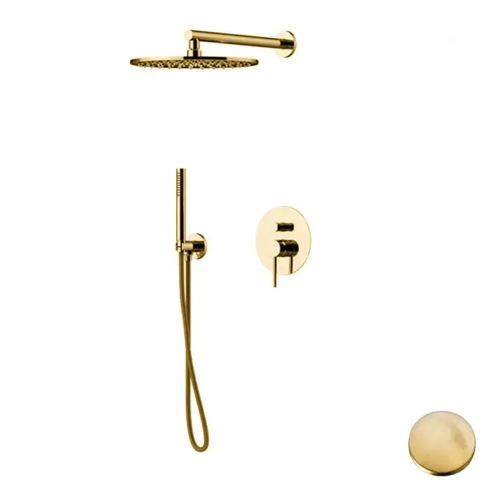 Gattoni Circle Two омплект для душа со встроенным смесителем с Gbox с ручной лейкой и верхним душем 250 мм, цвет: Oro Brush