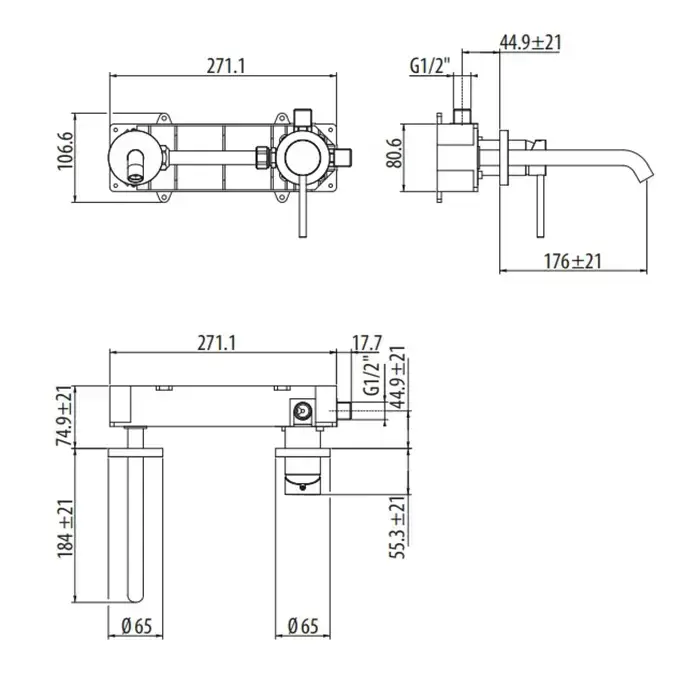 Gattoni Circle Two Смеситель встраиваемый для раковины на 2 отв, излив 21.5см, цвет: белый матовый