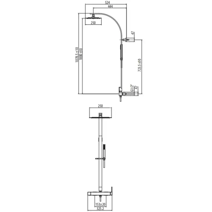 Gattoni Color Cube Душевая стойка, со смеситель для душа, с верхним душем 25см, ручная лейка цвет: хром
