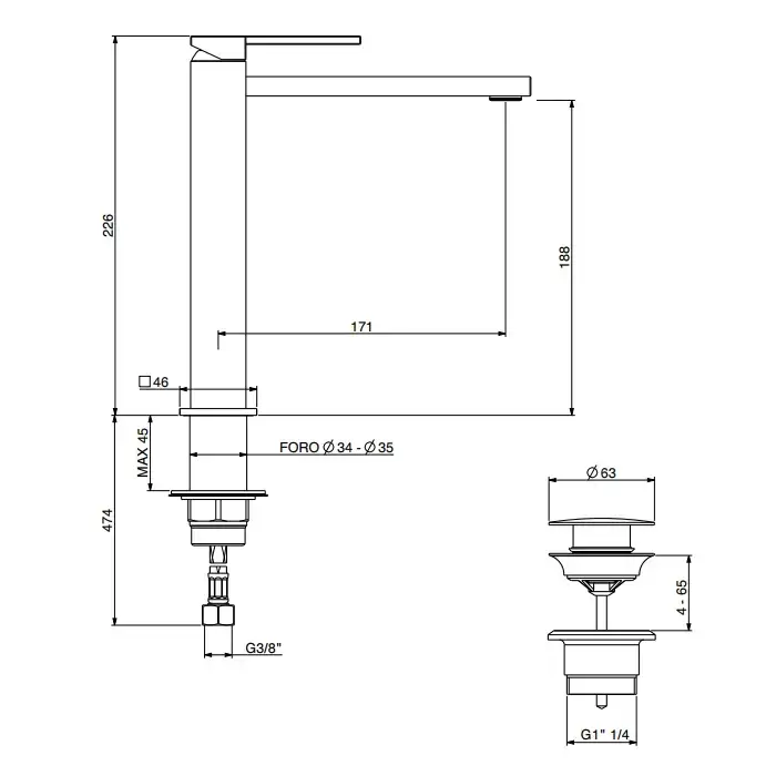 Gattoni Color Cube Смеситель для раковины на 1 отв., в комплекте с донным клапаном, цвет: хром