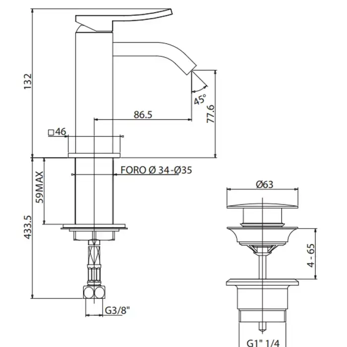Gattoni ELY Смеситель для биде H132мм, излив 86,5 мм, цвет: хром