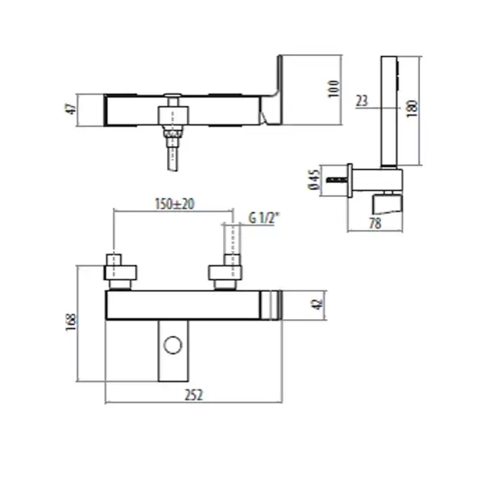 GATTONI KUBIC Смеситель для ванны/душа с ручной лейкой, цвет: хром глянцевый