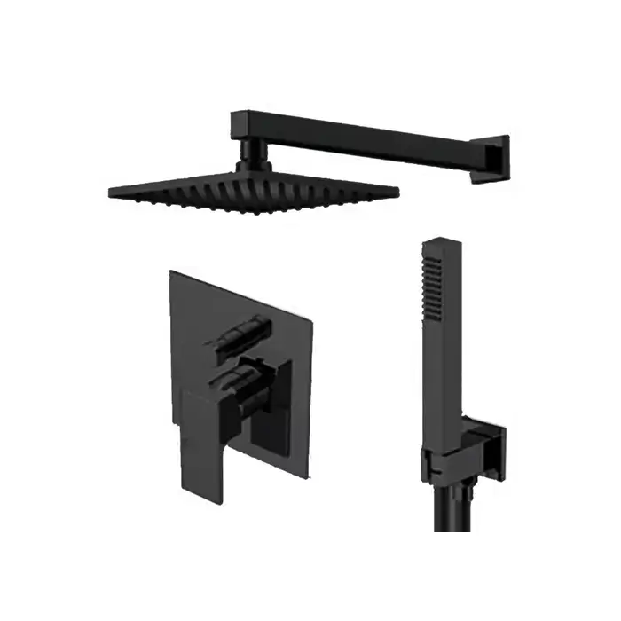 Gattoni Kubik Душевой набор со смесителем встраеваемый в стену, ручной лейкой и верхним душем 250х250 мм, цвет: черный матовый (с внутренней частью)