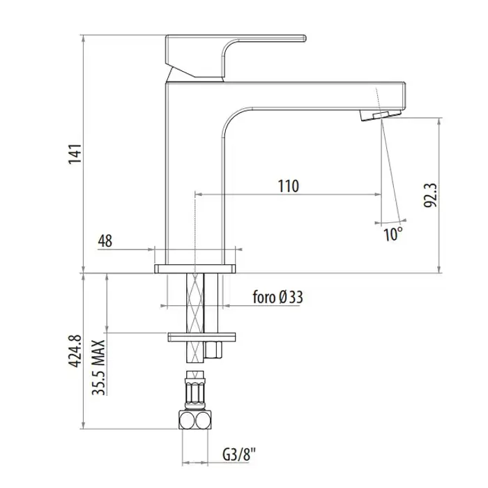 Gattoni Kubik Смеситель для раковины, без донного клапана, излив 110 мм, цвет: черный матовый