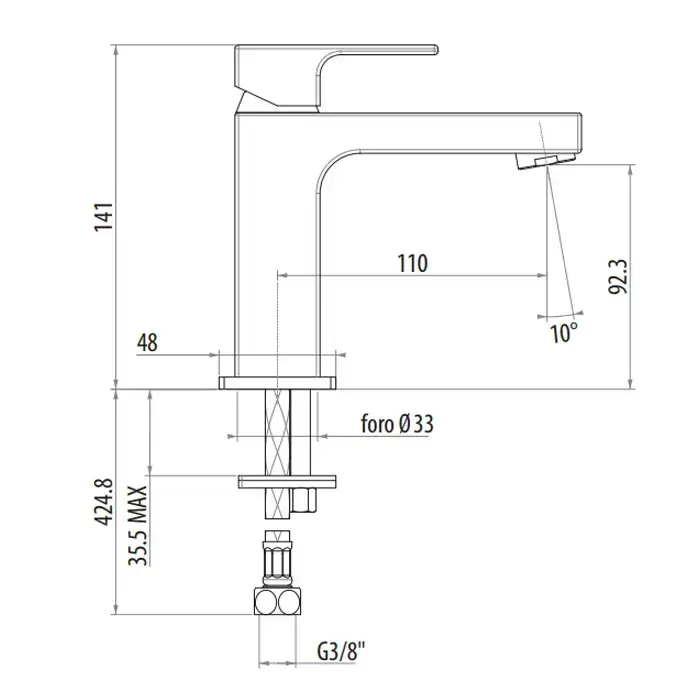 Gattoni Kubik Смеситель для раковины, без донного клапана, излив 110 мм, цвет: хром
