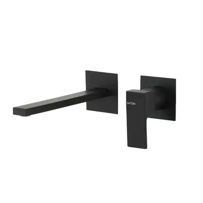Gattoni Kubik Смеситель для раковины встраиваемый, излив 203мм , с внутренней частью, цвет: черный матовый