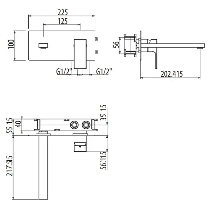Gattoni Kubik Смеситель для раковины, встраиваемый, с коробкой, горизонтальный, излив 190 мм, цвет: белый матовый