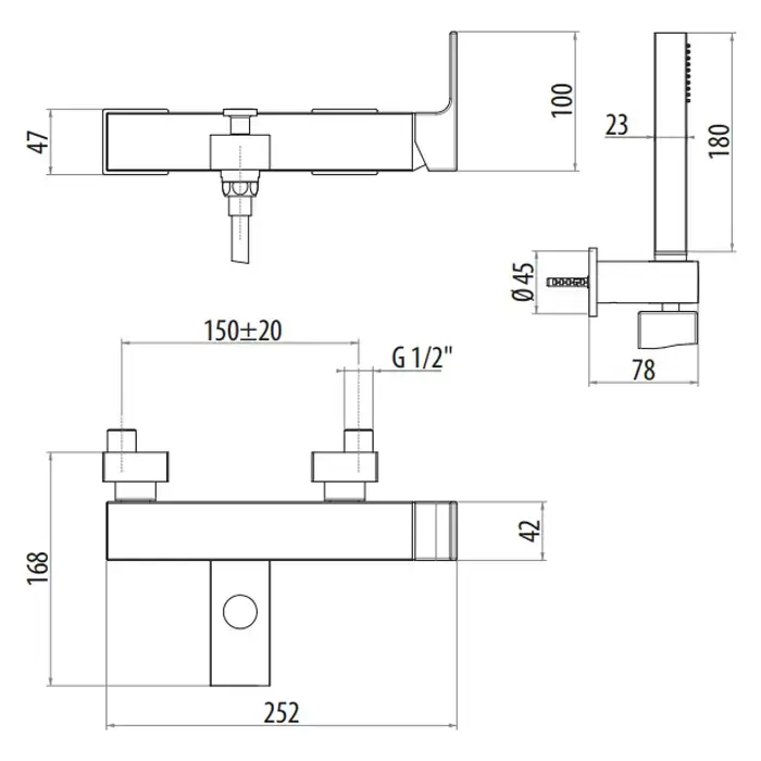Gattoni Kubik Смеситель для ванны/душа, встраиваемый, с ручной лейкой, цвет: черный матовый