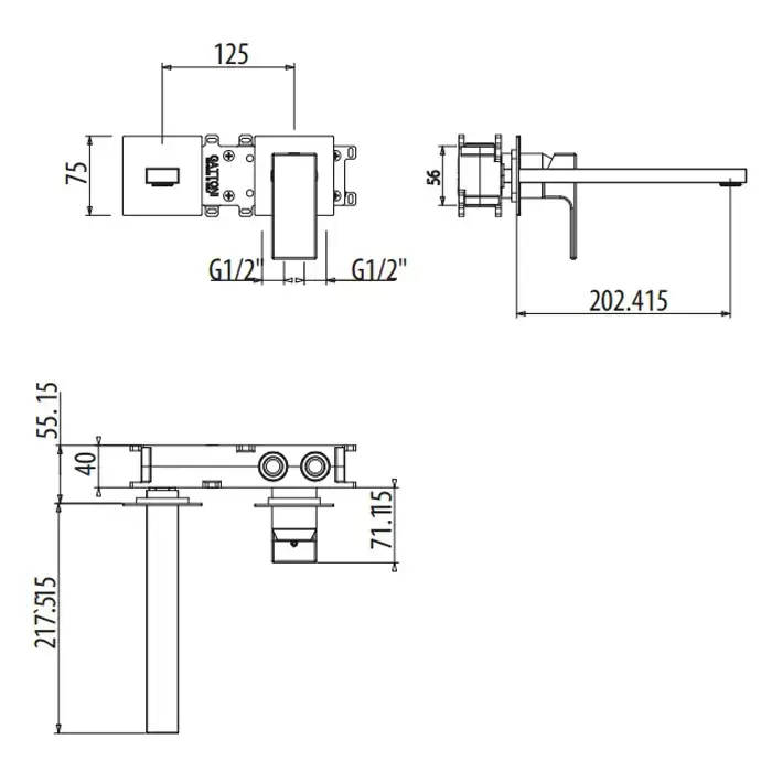 Gattoni Kubik Смеситель встраиваемый, с внутренней частью G-BOX, излив 202 мм, цвет: хром