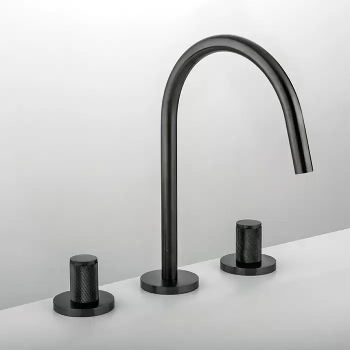 Gattoni MD Смеситель для раковины, 3 отв., ручки RONCO, с донным клапаном, цвет: черный матовый