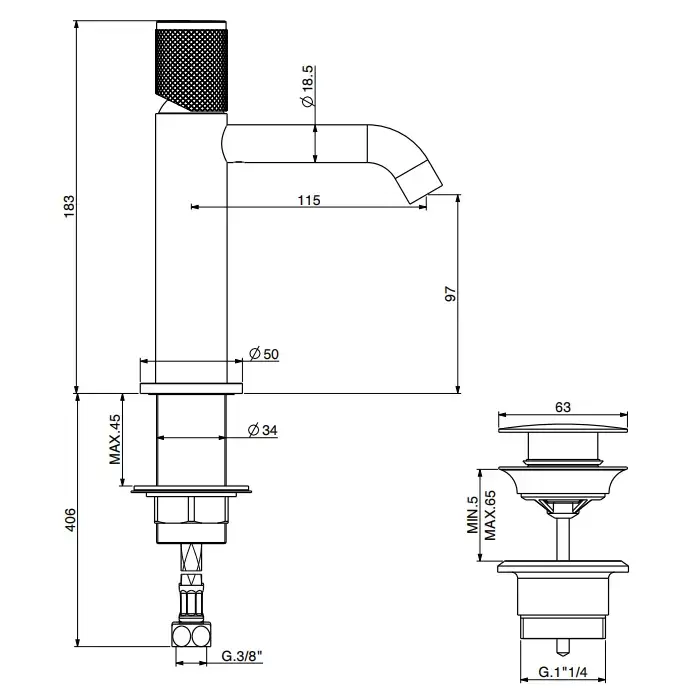 Gattoni MD Смеситель для раковины на 1 отверстие, ручка RONCO, высота излива 97,3 мм., с донным клапаном, цвет: хром