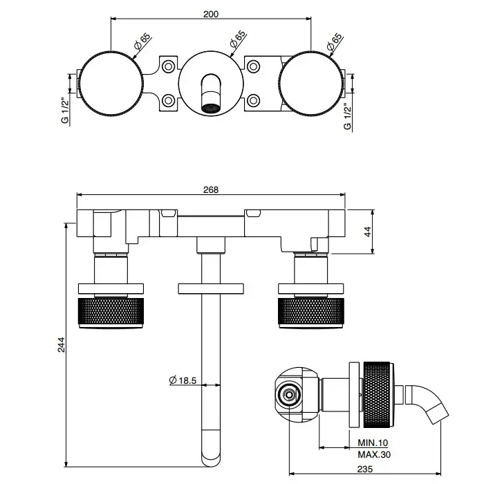 Gattoni MD Смеситель для раковины на 3 отверстия, настенный монтаж, ручки SAN GIULIO, в комплекте со скрытой частью, цвет: хром