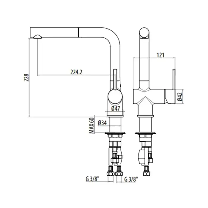 Gattoni Modern Смеситель для кухни, на 1 отв., с поворотным изливом, с выдвижным душем, цвет: хром