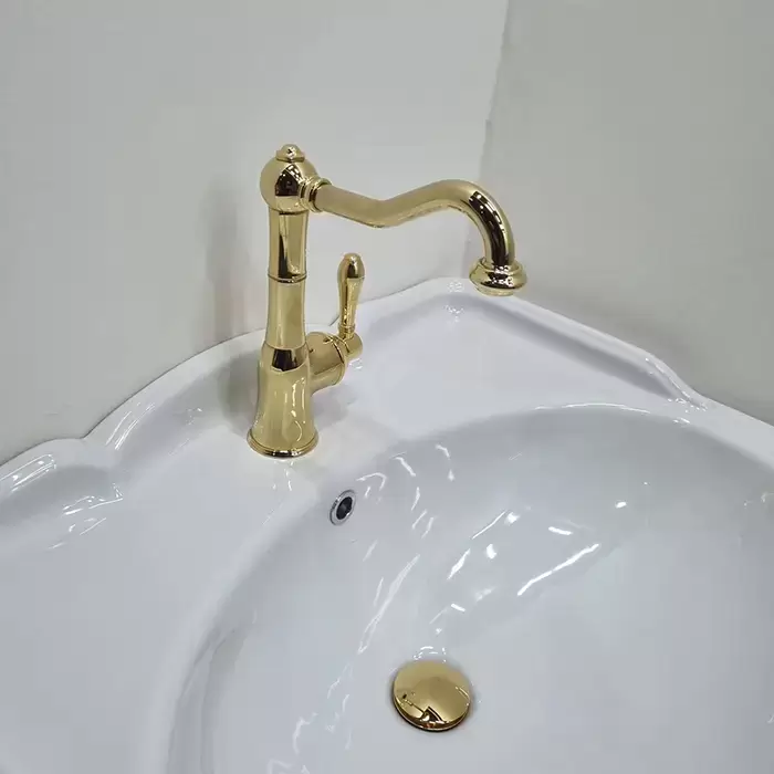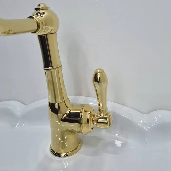 Gattoni Orta New Смеситель для раковины, на 1 отв., с высоким изливом, с донным клапаном, цвет: золото 24кт