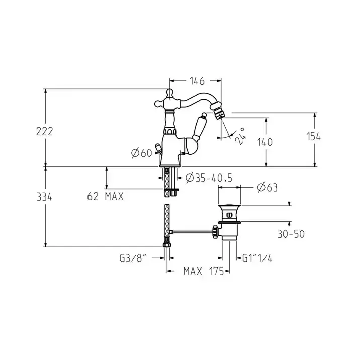 Gattoni Orta Смеситель для биде с высоким изливом, с белой ручкой, с донным клапаном, цвет: бронза