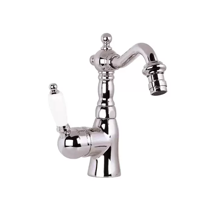 Gattoni Orta Смеситель для биде с высоким изливом, с белой ручкой, с донным клапаном, цвет: хром