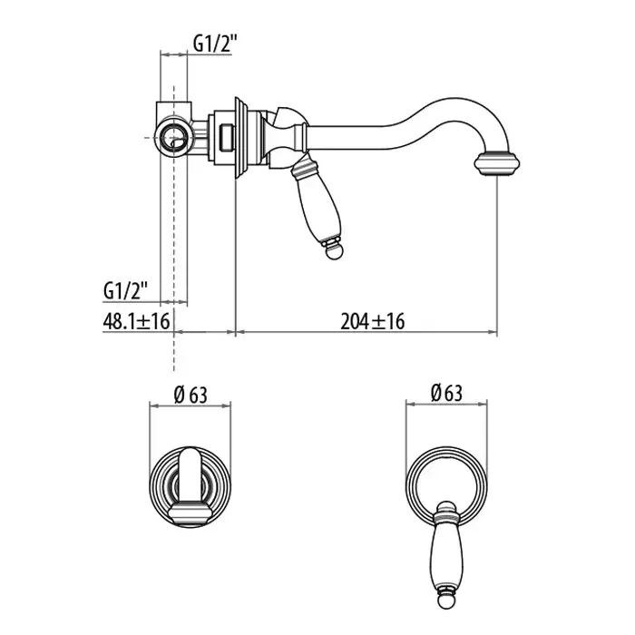 Gattoni Orta Смеситель встраиваемый из стены для раковины, с белой ручкой, цвет: хром