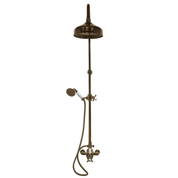 Gattoni PD Душевая колонка с термостатическим смесителем, верхним душем и лейкой, цвет: бронза